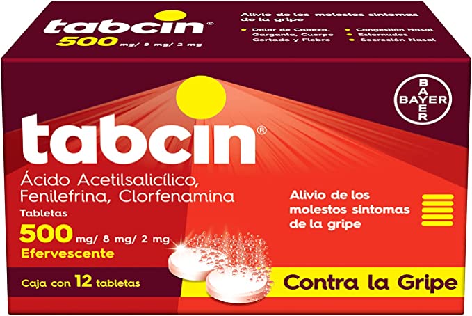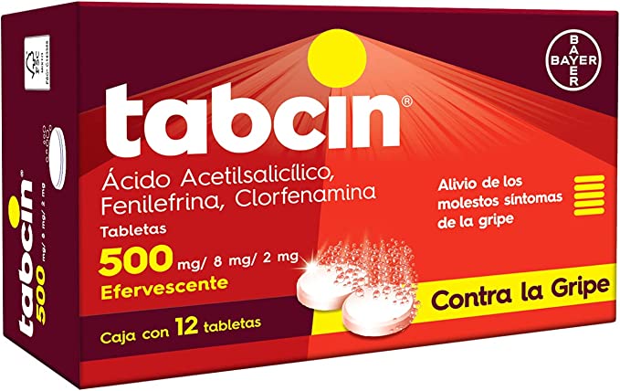 Cada Tableta efervescente contiene: Ácido acetilsalicílico 324 mg bitartrato de fenilefrina quivalente 4.21 g de fenilefrina. Maleato de clorfenamina 2 mg. Excipiente,.bb.p. 1 tableta.